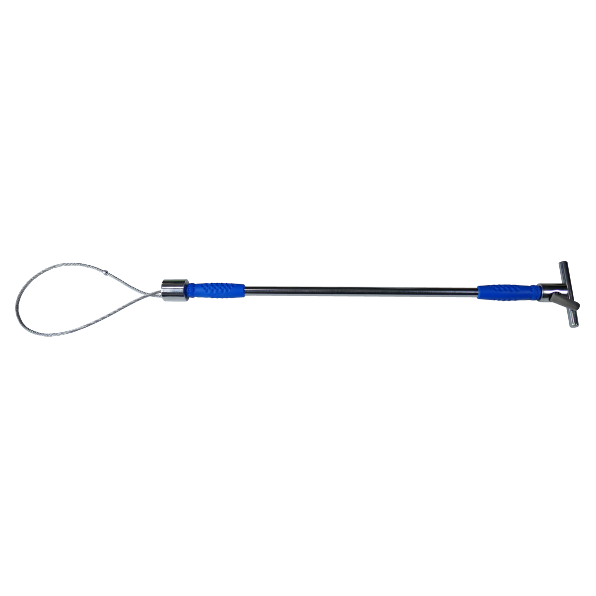 Heavy-duty restraint lasso designed for safe and effective handling of pigs by securing them behind the canines. Its extended length improves reach and control, allowing safe restraint for medical procedures or animal handling. Features a self-locking mechanism that tightens if the animal struggles, ensuring safety and efficiency.