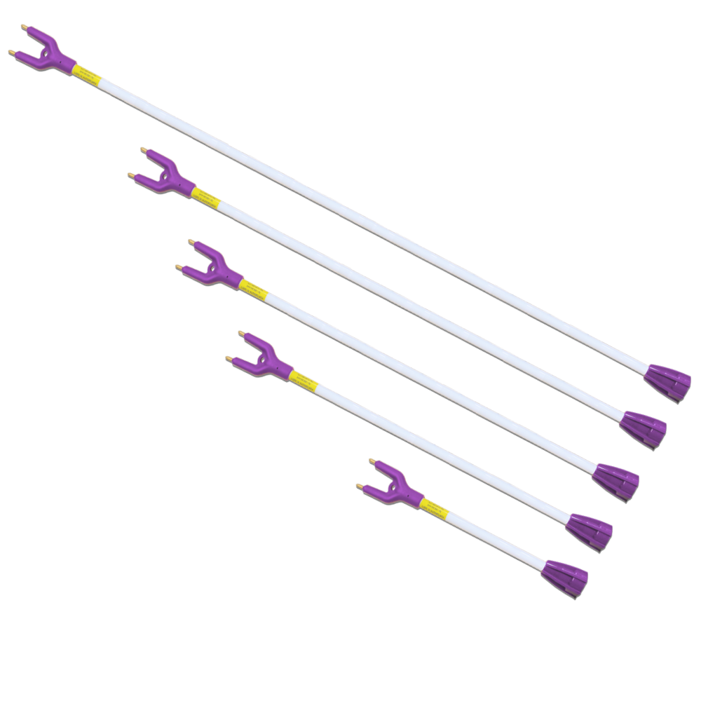 Flexible polycarbonate shafts for SHARPSHOCK Classic electric prods, also compatible with SHARPSHOCK MAX models. Designed for safe and effective animal handling, especially for animals with long hair. Equipped with pointed brass electrodes that easily penetrate through hair to ensure effective contact. Available in 6 lengths, including one rigid fiberglass model.